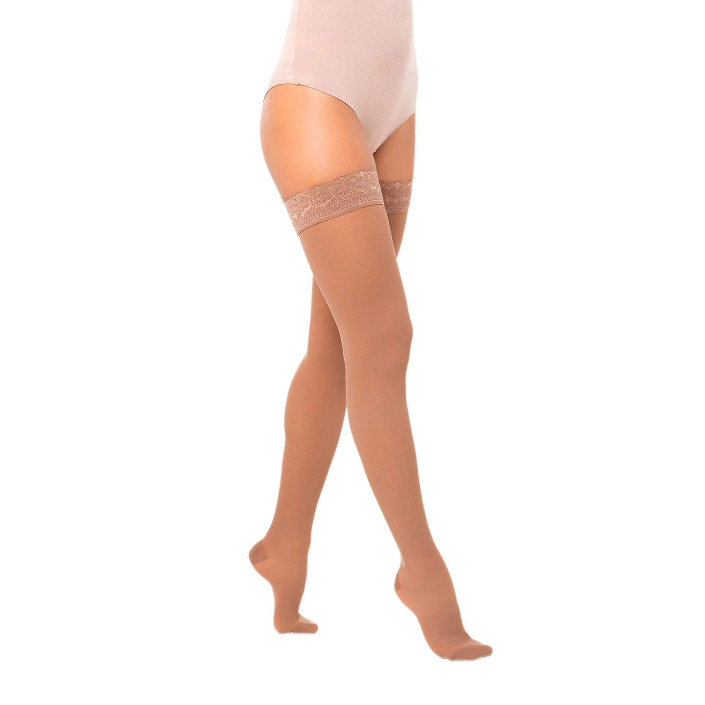 Медицинские чулки ИНТЕКС Флёр имеют ажурный верх на силиконе, изготавливаются из особых тонких нитей и совершенно неотличимы от обычных чулок. Чулки летней серии имеют прозрачную и лёгкую текстуру, поэтому прекрасного подходят для применения в помещениях и в теплое время года. Они прослужат вам не меньше 6 месяцев.