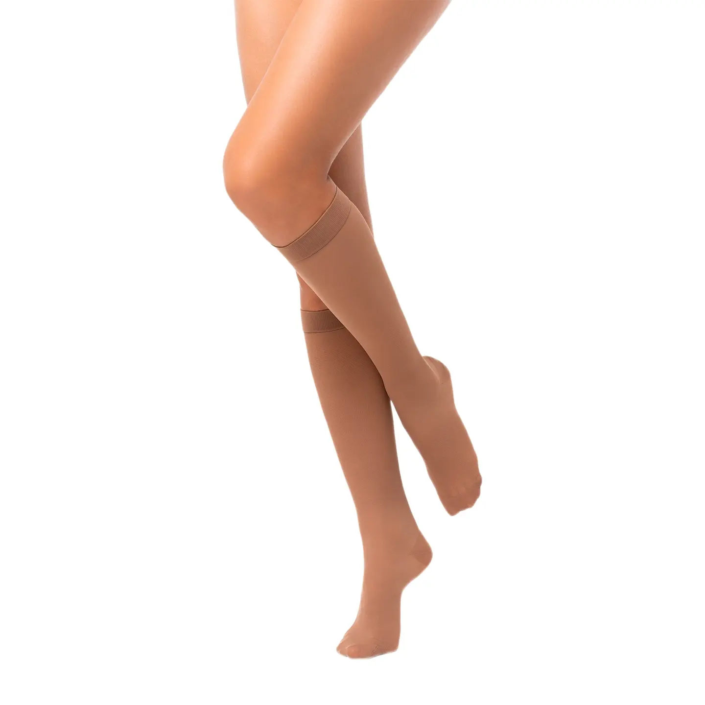 Компрессионные гольфы ИНТЕКС Флёр 1 степени компрессии относятся к летней серии медицинских изделий и обладают градуированной компрессией, которая улучшает отток крови. Полупрозрачные легкие гольфы имеют укрепленную пятку и мысок и крепко держатся на ноге мягкой фиксирующей резинкой, которая не сдавливает вены и не мешает кровообращению. Гольфы рекомендуется носить в теплое время года и при регулярном пребывании ног в тепле (в помещениях).