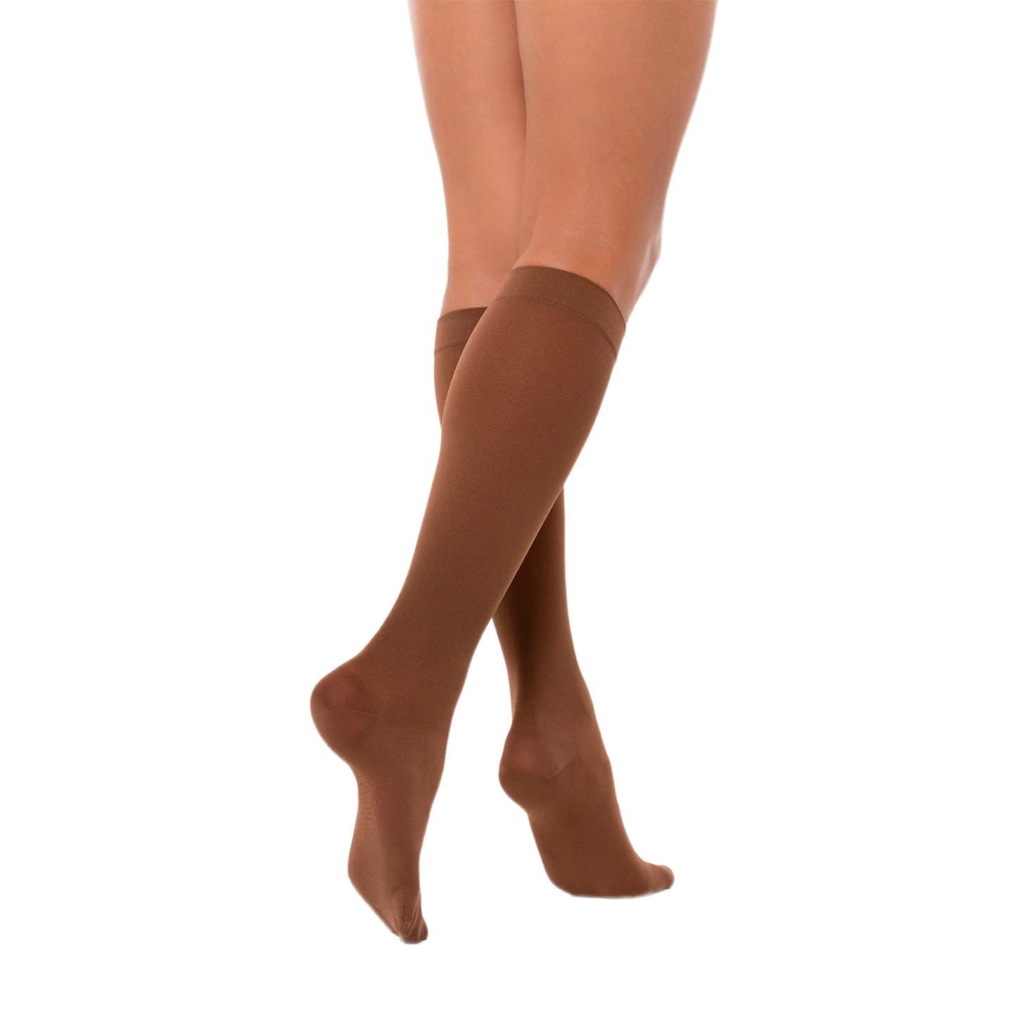 Компрессионные гольфы серии ИНТЕКС Элеганс 1 класса компрессии изготовлены на современном оборудовании, по строгим стандартам производства из высококачественного сырья, разработанного специально для медицинских изделий. Трикотаж оказывает правильное градуированное давление, предотвращающее отеки и застой крови в венах, стимулирует работу мышечной помпы голени, ускоряет скорость оттока крови.