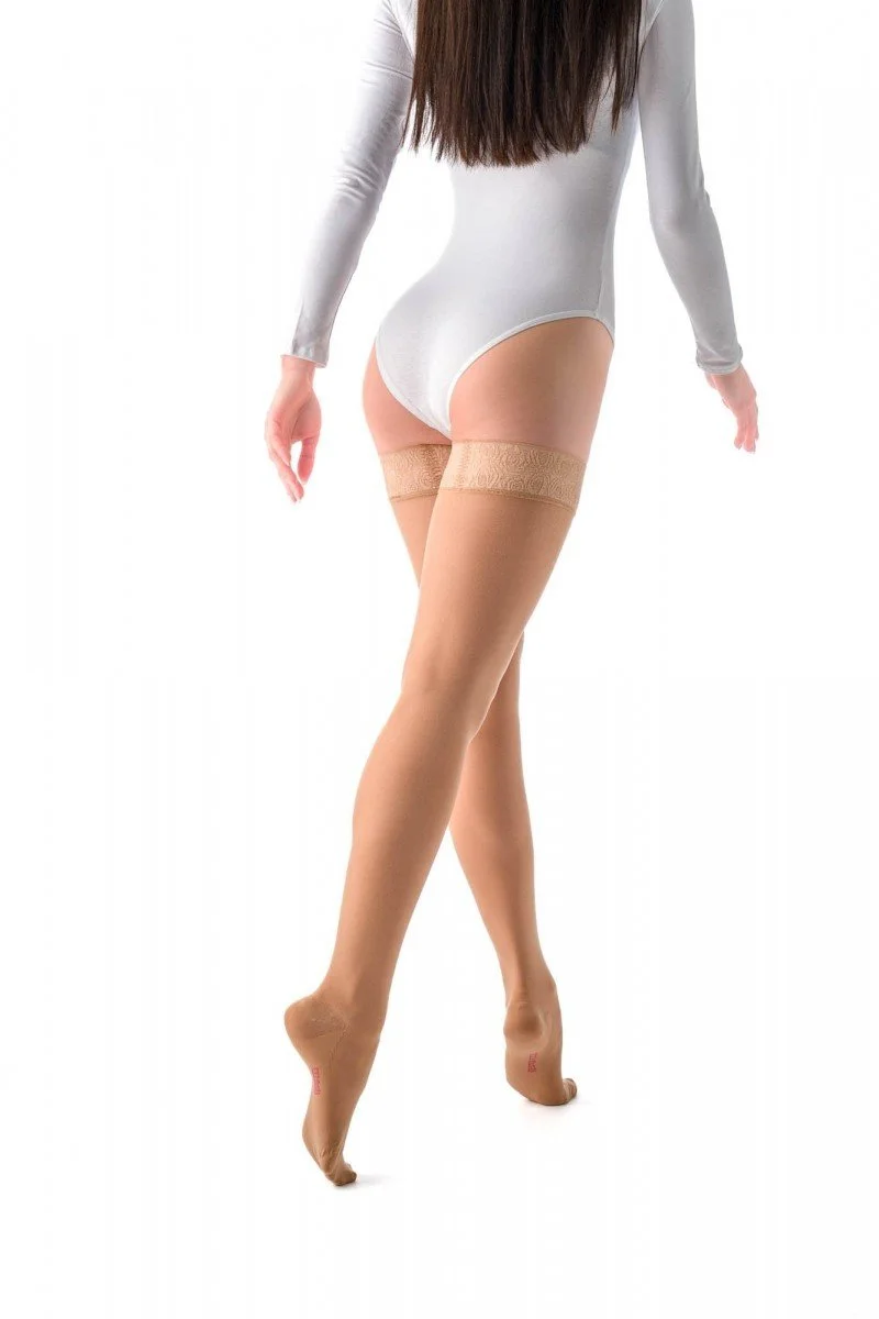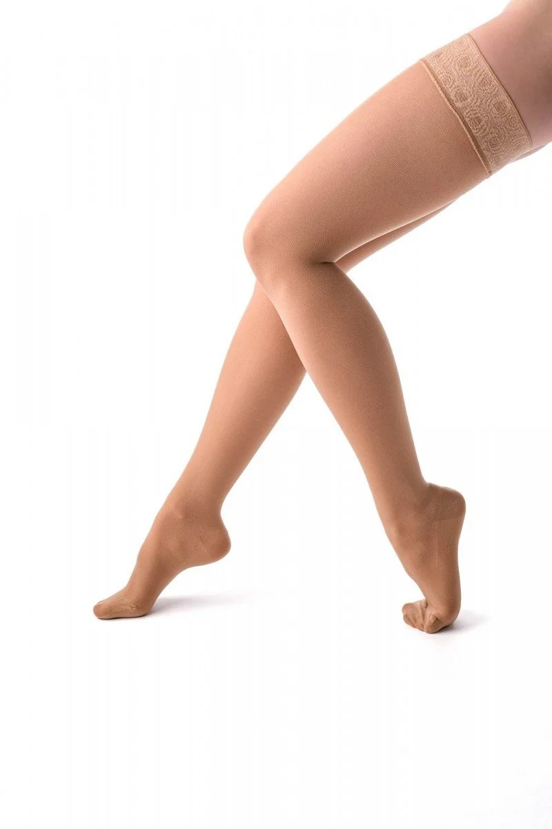 Компрессионные чулки Mediven Elegance удивят вас не только лечебным эффектом, но и внешним видом. Когда нужно выглядеть великолепно несмотря на лечение - выбирают именно Elegance. Эта линейка трикотажа поражает эстетикой, прозрачностью, цветами, которых никак не ожидаешь от лечебного компрессионного трикотажа. Компрессионные чулки Mediven Elegance 289 второго класса компрессии (23-32 мм рт. ст.) с закрытым носком удобны для ежедневной носки, так как визуально не отличаются от стандартных чулок. Как и другие компрессионные изделия типа “чулки”, данная модель используется при поражении вен на уровне бедра, подколенной ямки, голени, стопы.