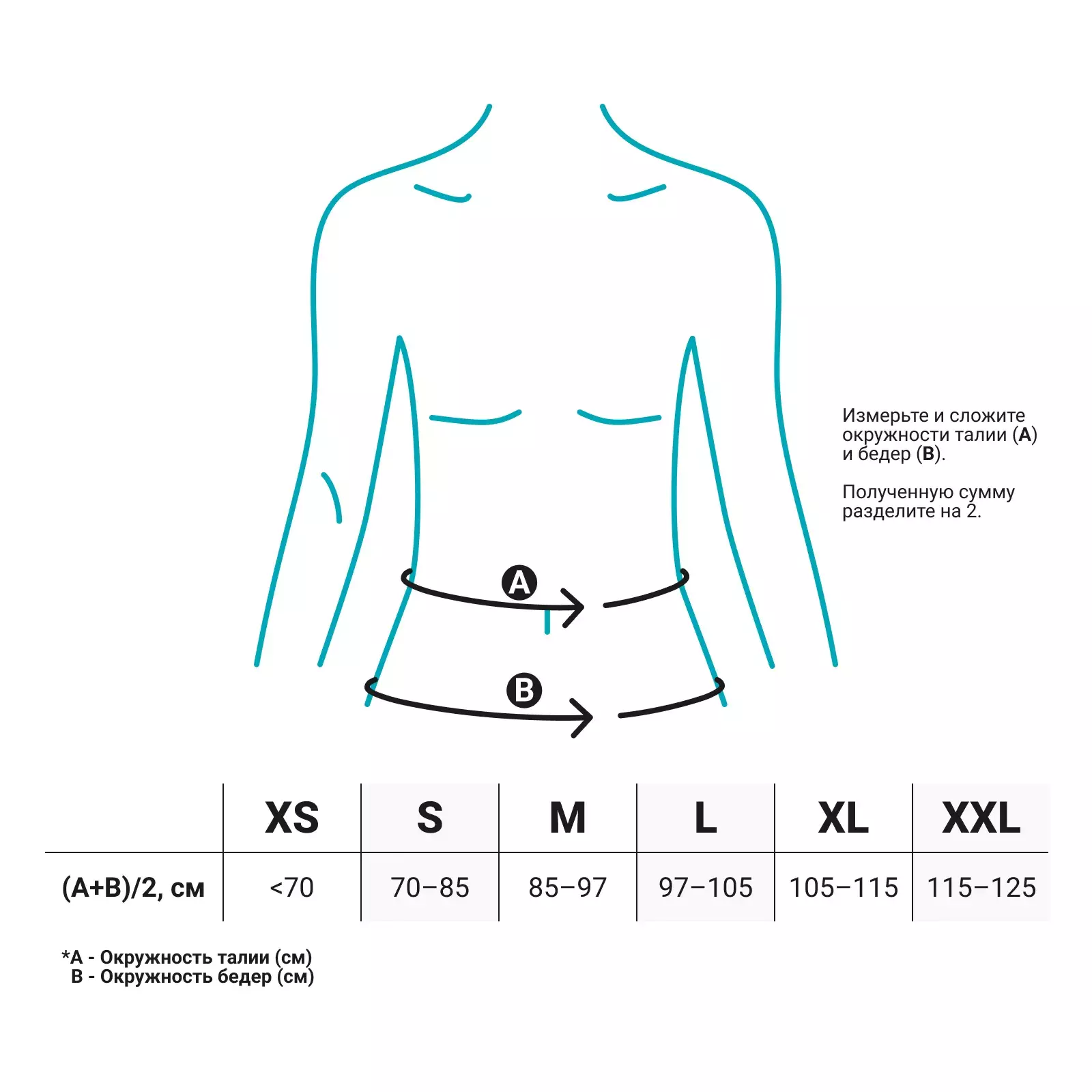 Для правильного выбора подходящего размера ортопедического корсета Orlett IBS-2004 необходимо сантиметровой лентой измерить окружность талии и бедер. Далее сумму окружностей поделить пополам и воспользоваться таблицей, представленной ниже: