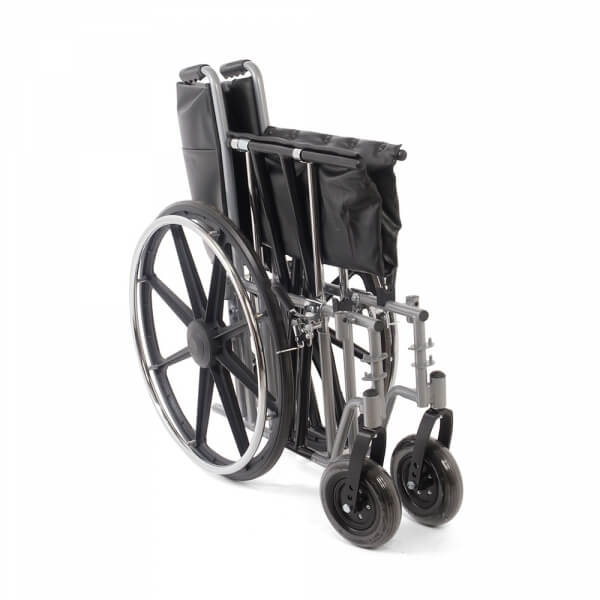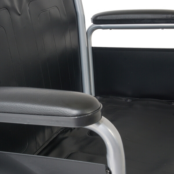 Ширина сиденья 61 см. Широкие передние колеса и литые шины приводных колес обеспечивают простоту эксплуатации и ухода. Форма подлокотников позволяет подъехать к столу, а возможность снимания без инструментов облегчает процесс пересаживания. Складная конструкция и съемные подножки обеспечивают компактность для транспортировки и хранения.