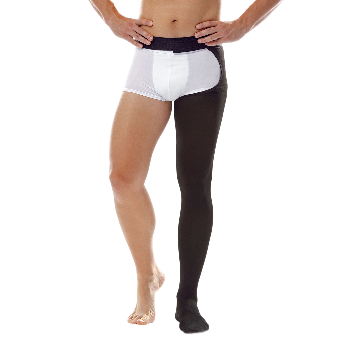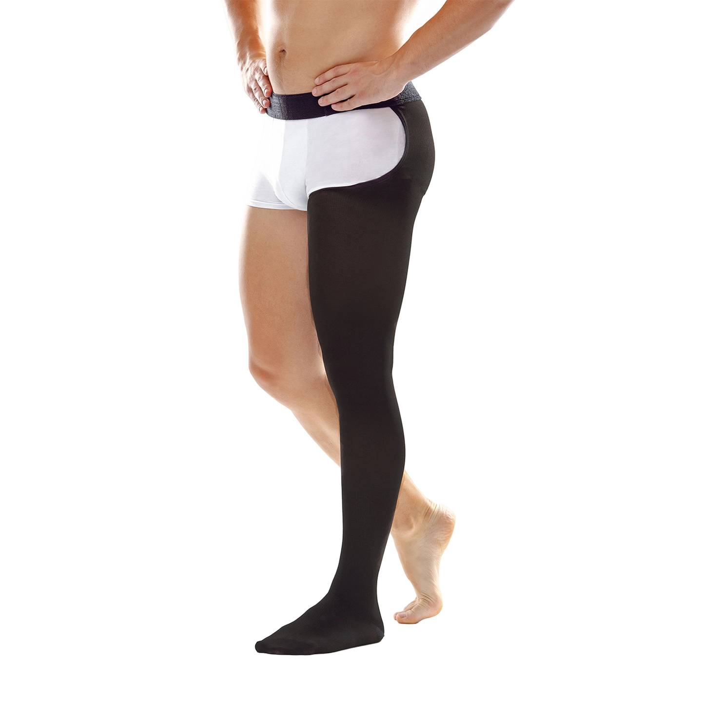 Чулок на одну ногу для мужчин ИНТЕКС 2 класса компрессии можно носить в любое время года, с любой обувью. При необходимости лечения варикозной болезни с поражением обеих конечностей у мужчин возможно ношение изделий в паре, используя для фиксации пояс, который идет в комплекте к каждому изделию.